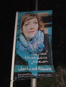 The movement to boycott the elections seems not to have gained much traction; Thanassis Cambanis’ post yesterday quotes some voters explaining why. The popular blogger Sandmonkey (aka Mahmoud Salem) is even running for parliament himself! But a number of activists remained in Tahrir yesterday, or showed up there after voting. As I went to take the metro around 4pm yesterday to pick up my kids from school, I saw them organizing themselves to perform the protest recorded here (Activist Gigi Ibrahim’s video: Tahrir, Nov 28 2011):